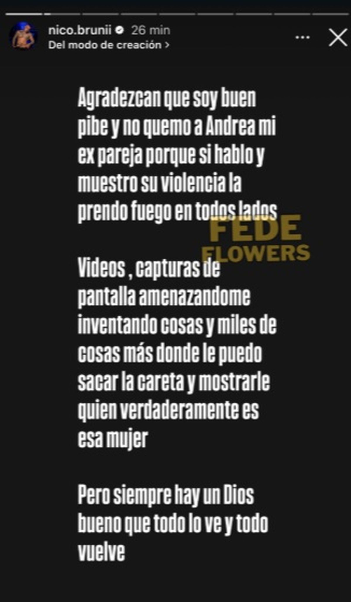 Además, fuera del programa, ha tenido una vida pública importante en la que reveló que había vendido contenido erótico durante un corto tiempo para pagar una deuda, pero se arrepintió y dejó esa actividad. En cuanto a su vida amorosa, ha tenido relaciones públicas y tras salir del reality confirmó su relación con un joven stripper llamado Nicolás Bruni, con quien ahora justamente está en medio de un grave escándalo.