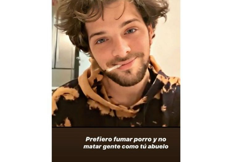 “Prefiero fumar porro y no matar gente como tu abuelo”, sostuvo Santi en sus stories, con la fotografía de un cigarrillo encendido en su boca.