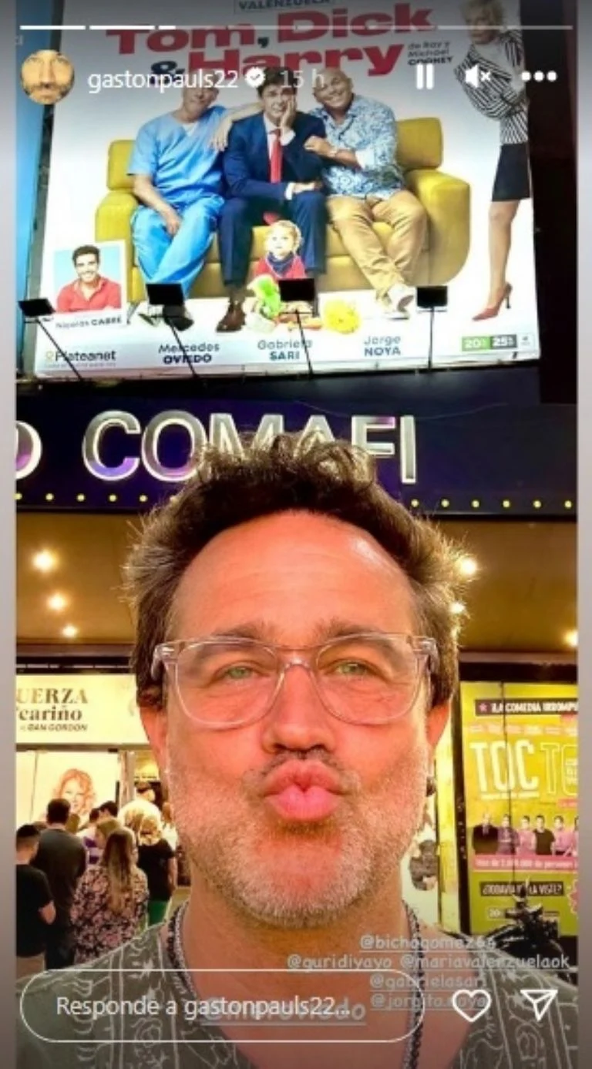 Esta semana, Gastón Pauls fue a ver la obra al Multiteatro. Cuando salió de la sala, el actor se sacó una foto en la puerta, con la marquesina y subió un posteo a su Instagram en el cual arrobó a varios de sus colegas, aunque llamativamente evitó mencionar a Martínez.