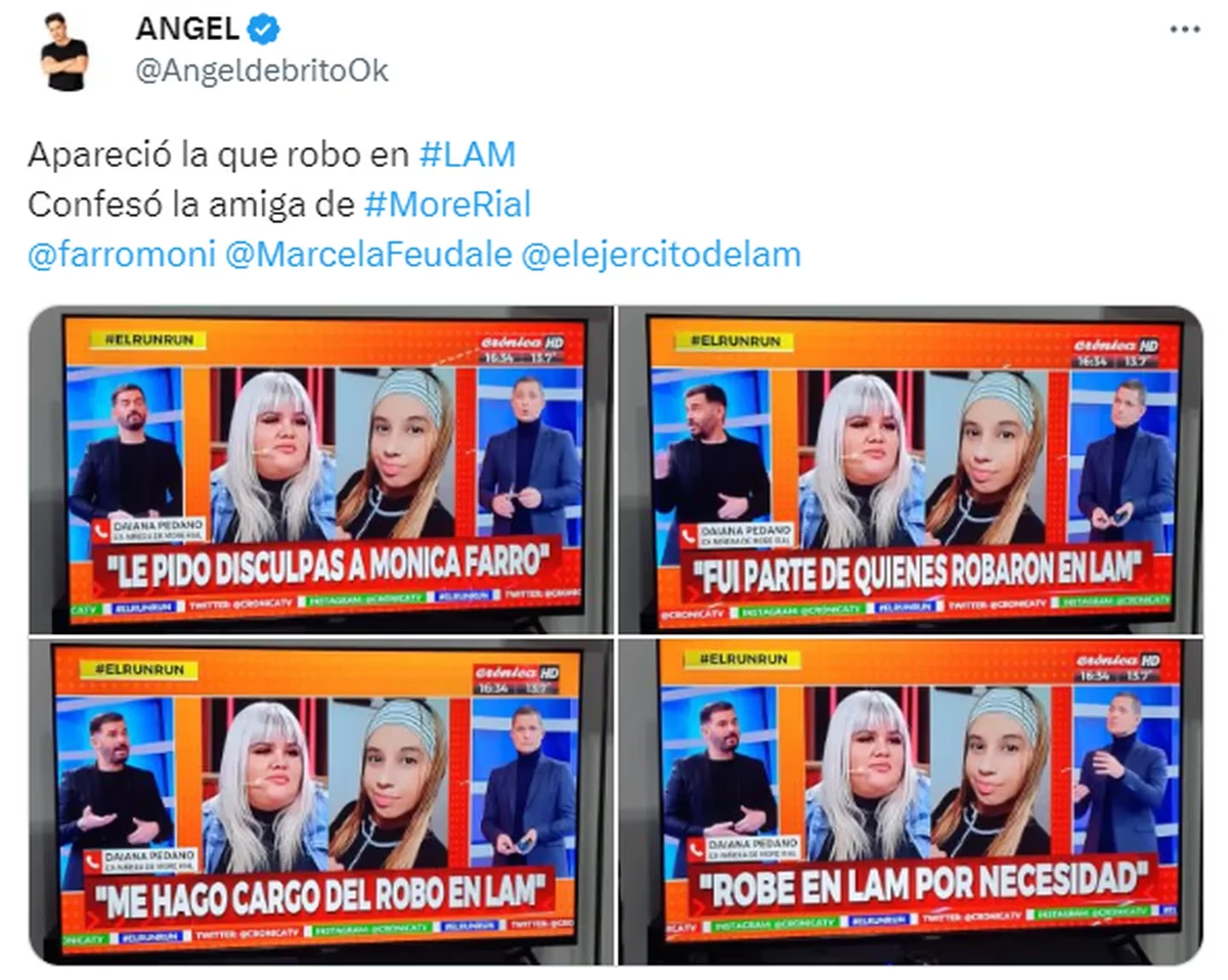 Hace unos días, Marcela Feudale, Estefi Berardi y Mónica Farro denunciaron haber sido víctimas de un robo en los camarines de LAM (América TV) durante la visita de More Rial al programa que conduce Ángel de Brito.
