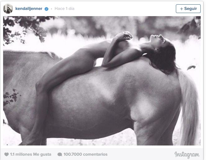 La hermanastra del clan Kardashian ha subido a Instagram una imagen en la que sale posando desnuda tumbada sobre un caballo.