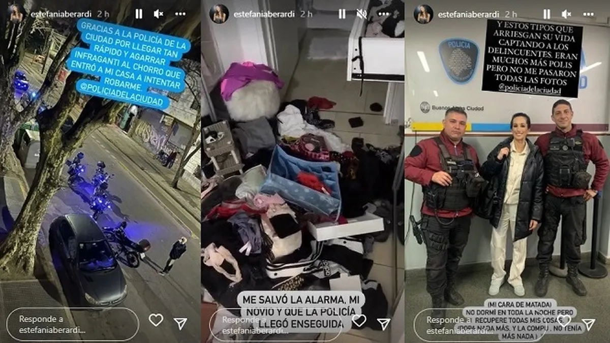 Además, fiel a su trabajo en las redes sociales, desde sus historias virtuales compartió algunas fotos que registró ni bien llegó a su departamento en la noche del martes. En una, tomada desde el balcón, puede verse la presencia policial a través de las motos estacionadas; en una segunda, mostró cómo el ladrón llegó a revolver todo en busca de valores; mientras que en una tercera, volvió a agradecerle a la policía de la Ciudad por su rápida actuación, de manera que logró recuperar todo lo robado, hasta su computadora.