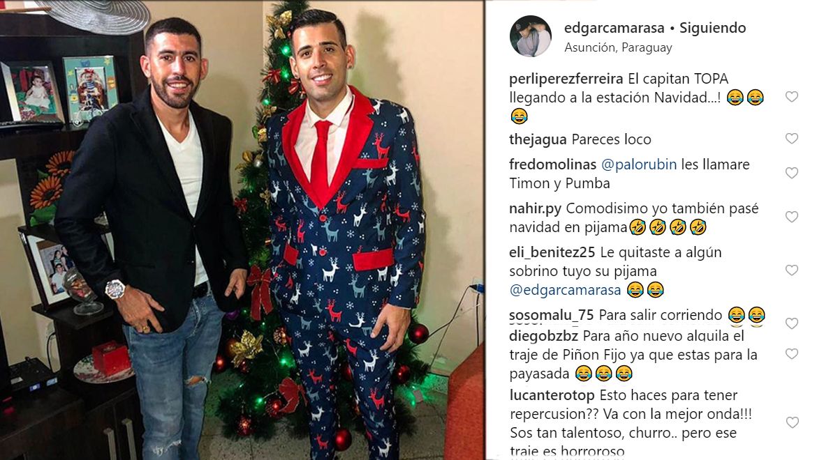 El cantante Édgar Camarasa subió una foto a Instagram deseando una feliz Navidad a sus seguidores, y se robó la atención de todos con un look muy peculiar: su traje azul al cuerpo, además de detalles rojos en la solapa, estaba cubierto de renos de colores.