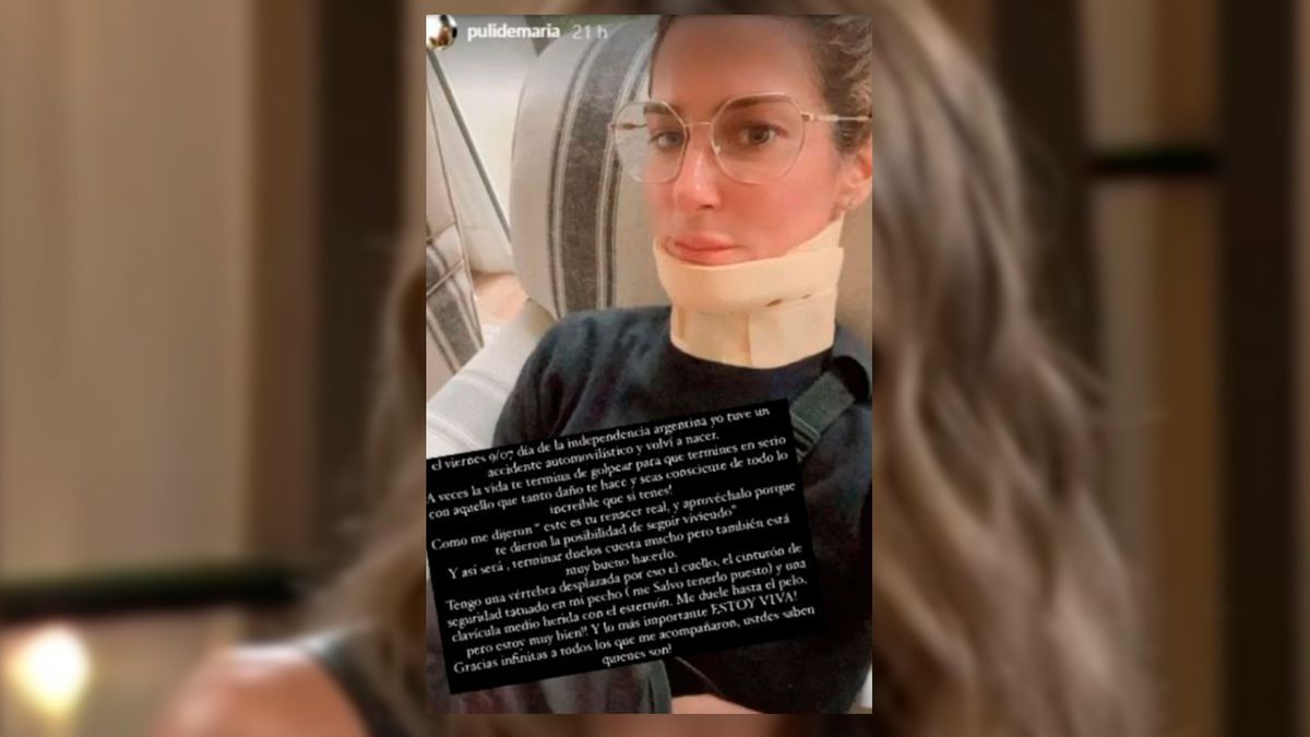 Por último, Demaría mencionó cuáles fueron las consecuencias físicas que le dejó el impacto. "Tengo una vértebra desplazada, por eso me pusieron el cuello... El cinturón tatuado en mi pecho (me salvó tenerlo puesto) y una clavícula medio herida en el esternón. Me duele hasta el pelo pero estoy muy bien y, lo más importante, estoy viva”, sentenció.