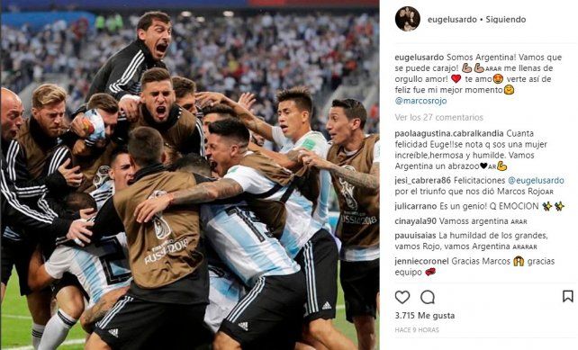 La esposa del futbolista se mostró feliz por él en Instagram tras el gol: "Gracias, amarte más imposible", comentó.