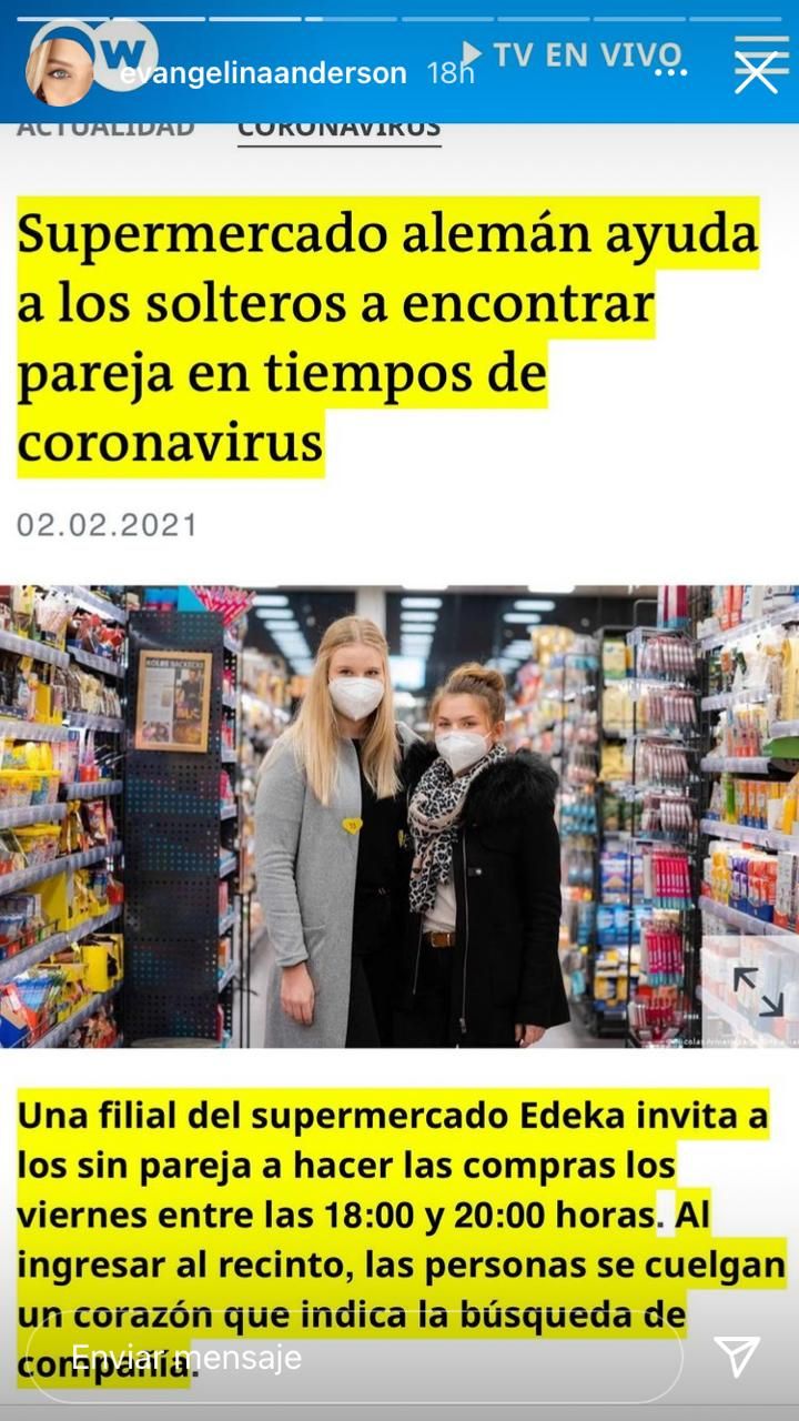 Además, contó lo que sí está abierto y destacó una increíble situación que está pasando en el país germano: "Uno de los pocos lugares que permanecen abiertos son los supermercados. Y hay uno que invita a los compradores a coquetear (con mascarillas) y los anima hacer 'compras de solteros' durante los viernes por la noche".