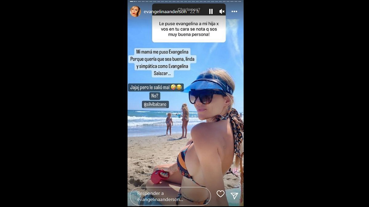 A lo que Evangelina Anderson mostró ese mensaje y reveló la historia y el origen de su nombre: “Mi mamá me puso Evangelina porque quería que sea buena, linda y simpática como Evangelina Salazar...”, contó. Y agregó con humor: “Pero le salió mal, ¿no?”, mencionando en la red social a su madre.