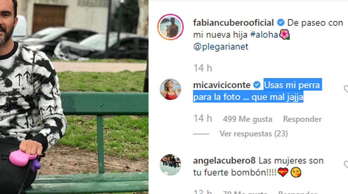 Y en las últimas horas, Cubero se sacó una foto en el banco de una plaza mientras paseaba a la perra de Mica Viciconte, Aloha.
