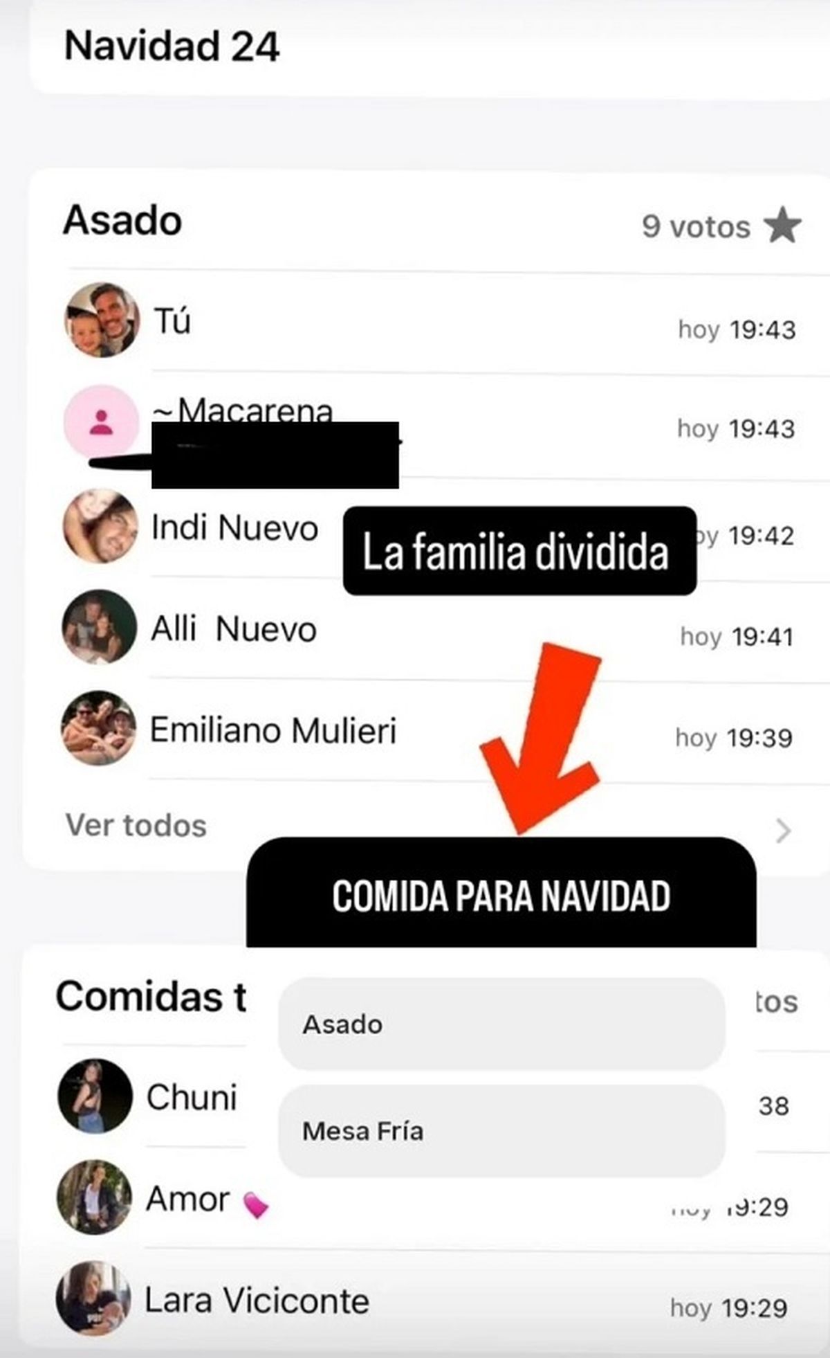Incluso se ve como Cubero votó por el asado mientras que su pareja Mica Viciconte se inclinó por una mesa con comidas frías, al igual que su hermana Lara y Sienna, una de las hijas de Poroto y Nicole Neumann. Veremos qué resultado se termina dando pero por el momento parece no haber un acuerdo final entre las dos opciones gastronómicas planteadas.