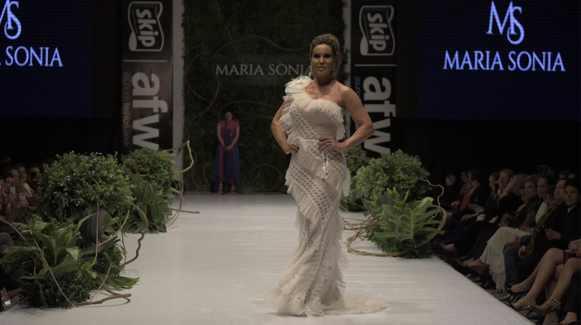 Uno de los desfiles que más estrellas tuvo fue el de la diseñadora María Sonia Gauto, quien sorprendió al convocar a la recordada ex modelo Lorena Arias, hoy ya alejada de los medios.