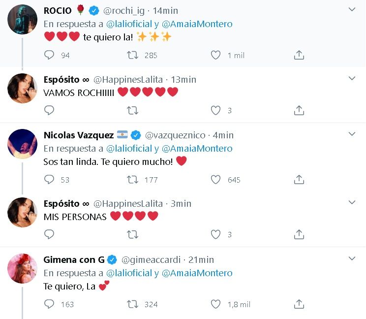 Sus ex compañeros de elenco, Nico Vázquez, Gime Accardi, Rochi Igarzábal, entre otros, la apoyaron públicamente y le brindaron todo su cariño a Lali.