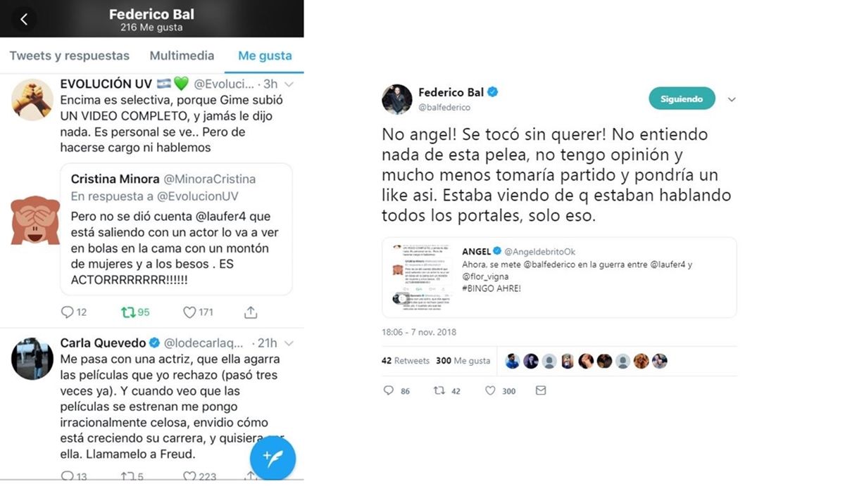 Fede Bal aclaró que el "me gusta" en la pelea de Laurita y Flor Vigna fue por error