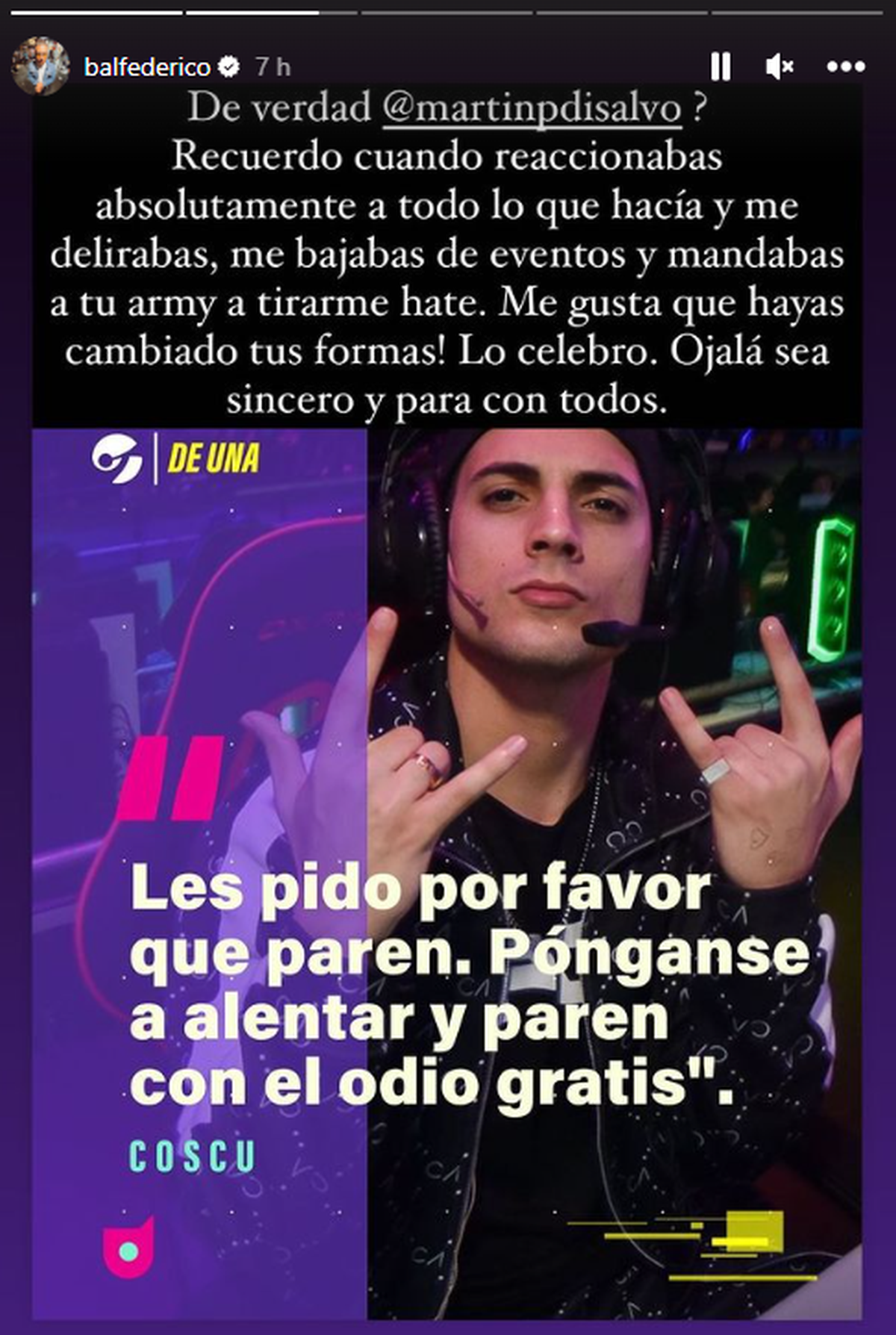 Así lo informaron los streamers Coscu y Momo, quienes salieron en defensa del Chapu."No te metas Coscu… ¿Cómo no me voy a meter? A un pibe que fue al Mundial a hacer contenido le están amenazando que le van a matar al hijo, solo por haber ido a hacer contenido a un evento al que cualquier persona sueña con ir", escribió Martín Disalvo, más conocido como Coscu.