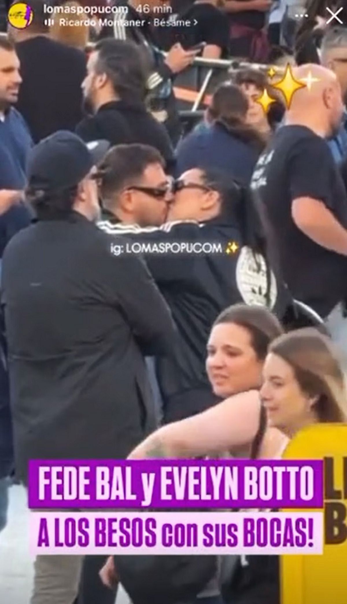 La cuenta en Instagram Lomaspopucom reflejó ademá el momento en que ambos se besaban apasionadamente entre medio de la multitud.