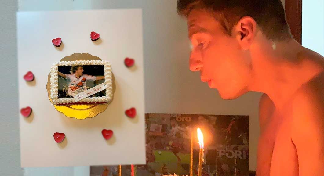 Daniela le preparó una torta con un gran recuerdo: un grito de gol del rubio con la casaca de River Plate, donde estuvo hasta 2004. La modelo dijo que era su foto favorita.