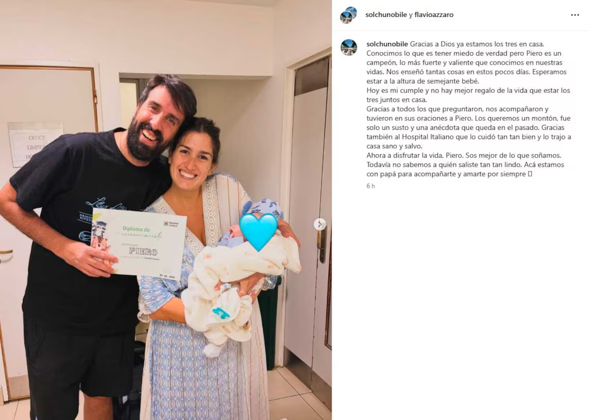El periodista deportivo Flavio Azzaro y su esposa, Sol Nobile, recibieron a su primer hijo, Piero, hace pocos días y ya disfrutan de la nueva vida en familia.