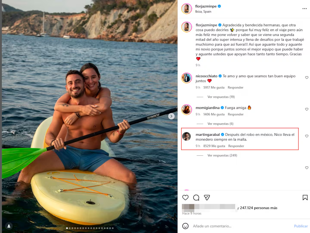 Flor Jazmín Peña y Nico Occhiato disfrutaron de unas vacaciones soñadas en Ibiza, pero una foto que ella compartió en Instagram desató una catarata de comentarios por un peculiar detalle.