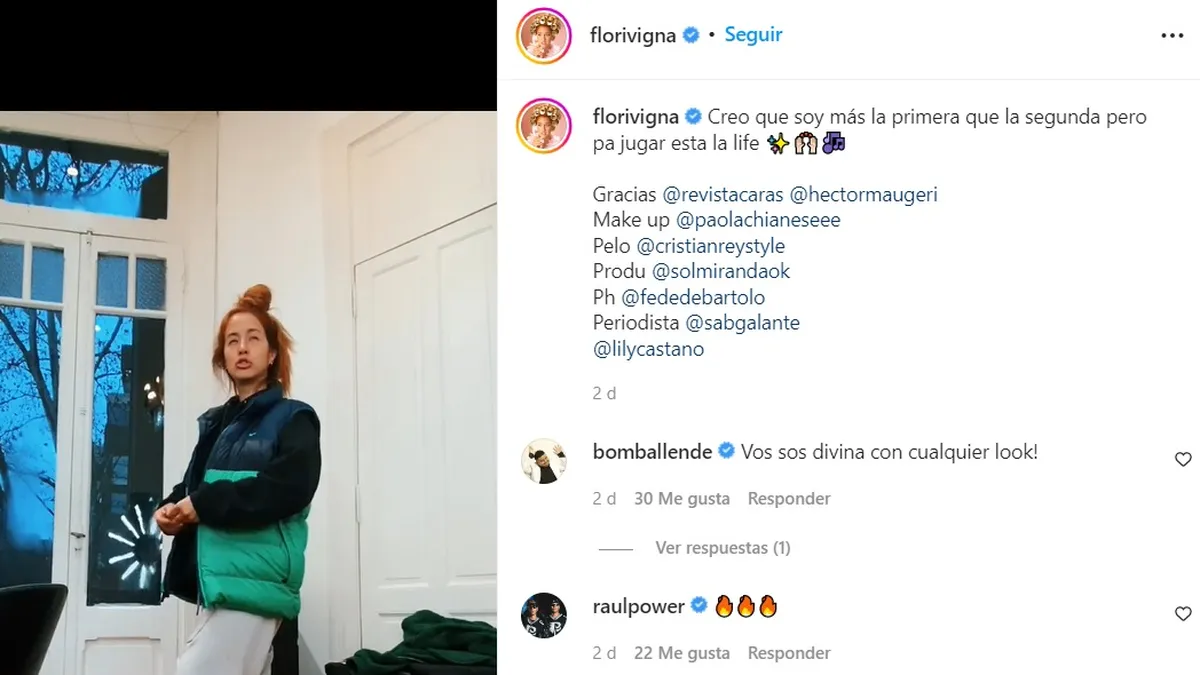 "Creo que soy más la primera que la segunda pero pa jugar está la life", expresó Flor mostrando un breve video donde se la ve de entre casa y con ropa cómoda.