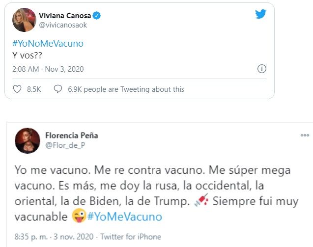 "Yo me vacuno. Me re contra vacuno. Me súper mega vacuno. Es más, me doy la rusa, la occidental, la oriental, la de Biden, la de Trump", señaló. Y broméo: "Siempre fui muy vacunable #YoMeVacuno".