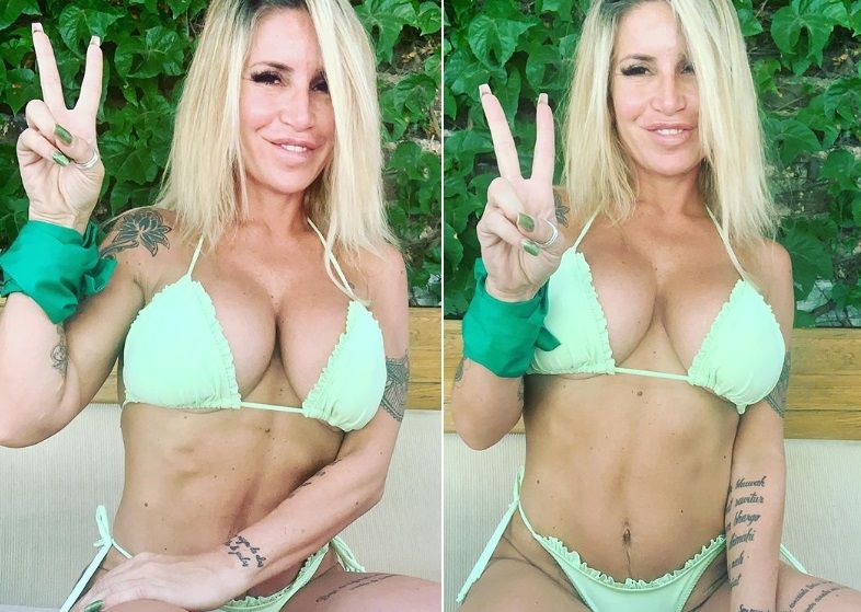 Desde las redes sociales, la actriz posó en bikini y con un pañuelo verde en su muñeca, haciendo la señal peronista con sus manos. "Día verde, peroncho y feliz", indicó en Instagram.