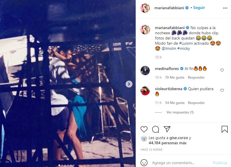 "No culpes a la noche... donde hubo clip, fotos del back quedan. Modo fan de #Luismi activado", indicó Fabbiani en su posteo.