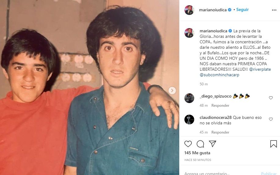 Se sabe del fanatismo de Mariano Iúdica por River Plate. Desde Instagram, el conductor de "Polémica en el bar", América, recordó el año 1986 donde el club se consagró por primera vez campeón de América de la mano del "Bambino" Héctor Rodofo Veira.