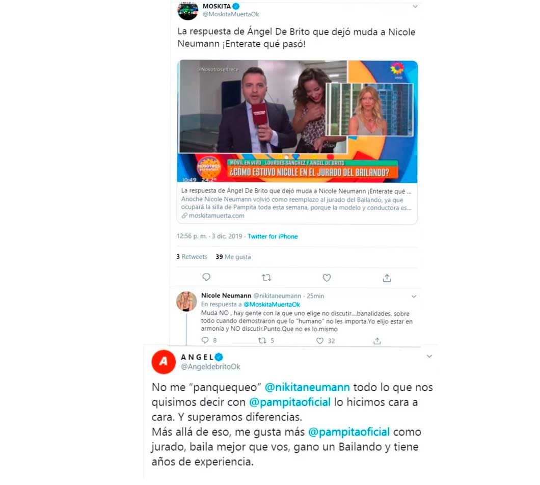 La rubia modelo reemplazó ayer a Pampita, que se encuentra en su luna de miel con Roberto García Moritán en París, en “ShowMatch”, El Trece. Durante las transmisión estuvo todo bien pero todo se complicó hoy, cuando el periodista confesó que prefiere a Pampita como compañera. Al enterarse de esto, Nicole lo trató de "panqueque".