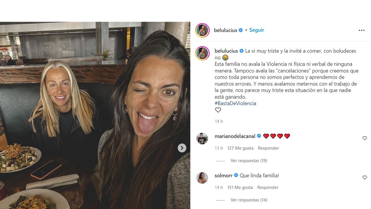 Lo cierto es que desde su cuenta de Instagram, Belu Lucius se mostró junto a su madre Silvia y se refirió a estos comentarios sobre su hermana de manera contundente.