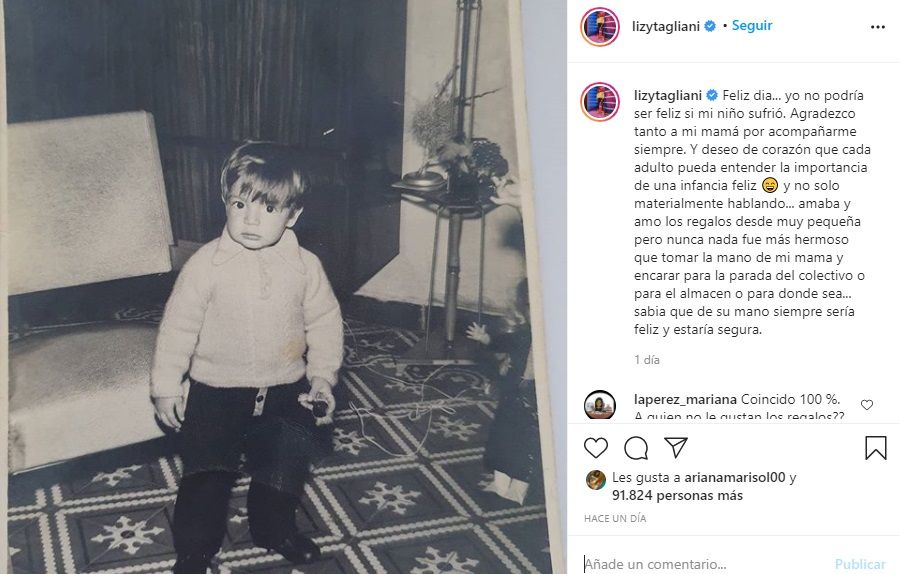 Y recordó: "Amaba y amo los regalos desde muy pequeña pero nunca nada fue más hermoso que tomar la mano de mi mamá y encarar para la parada del colectivo o para el almacén o para donde sea...".