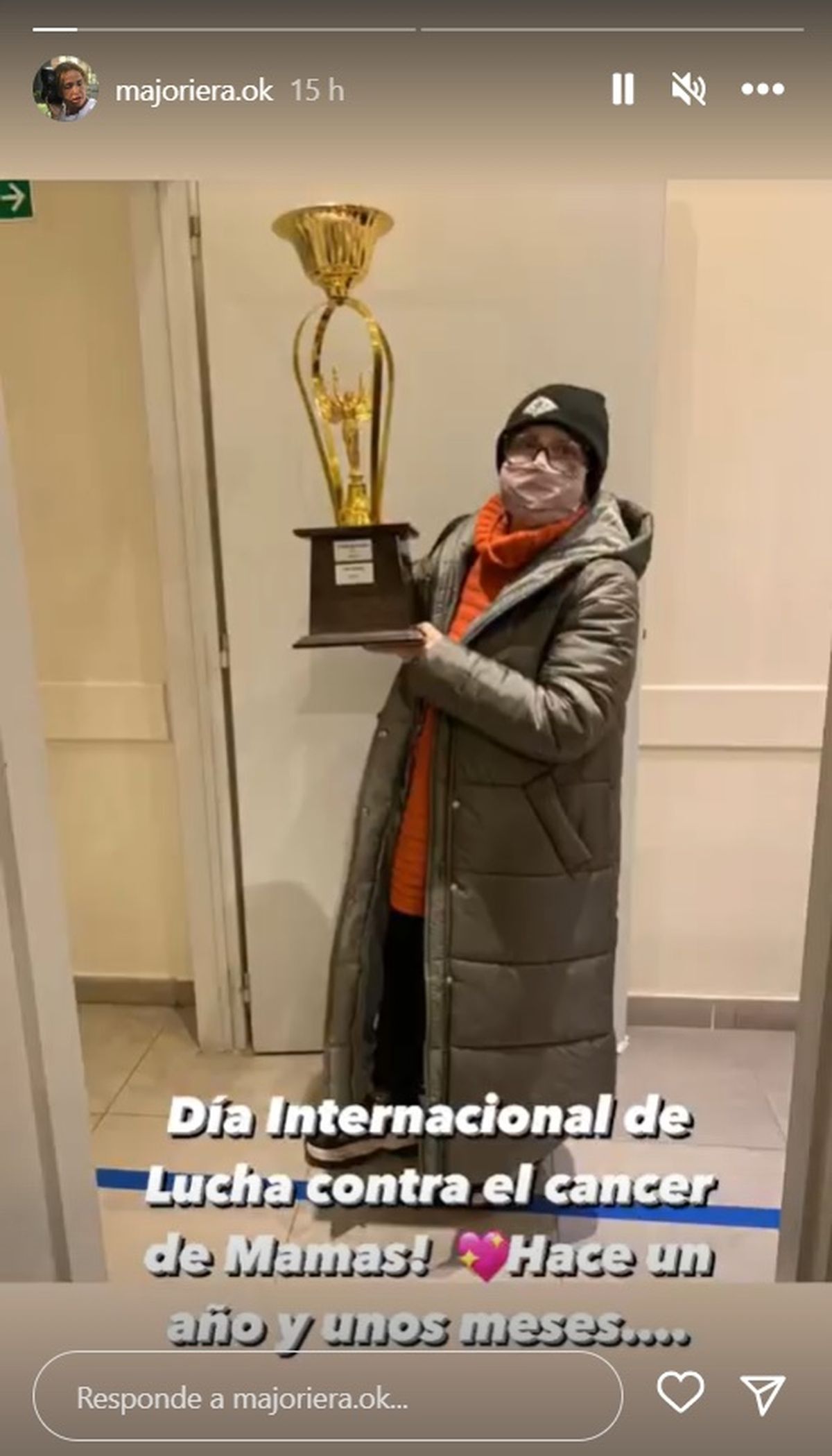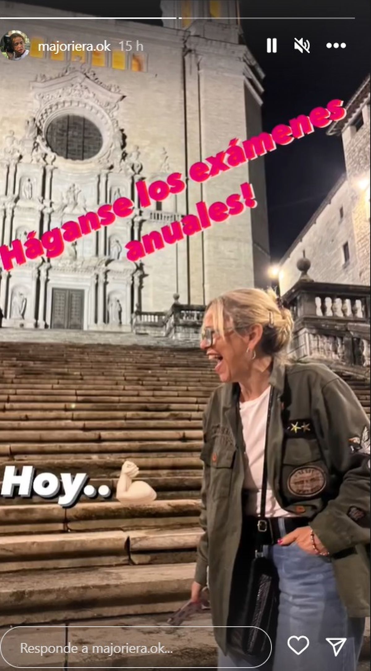 Y luego, en otra foto, se la ve sonriendo de noche, en clara muestra de alegría y con el emoji de brazo haciendo fuerza: "Háganse los exámenes anuales! Hoy...".