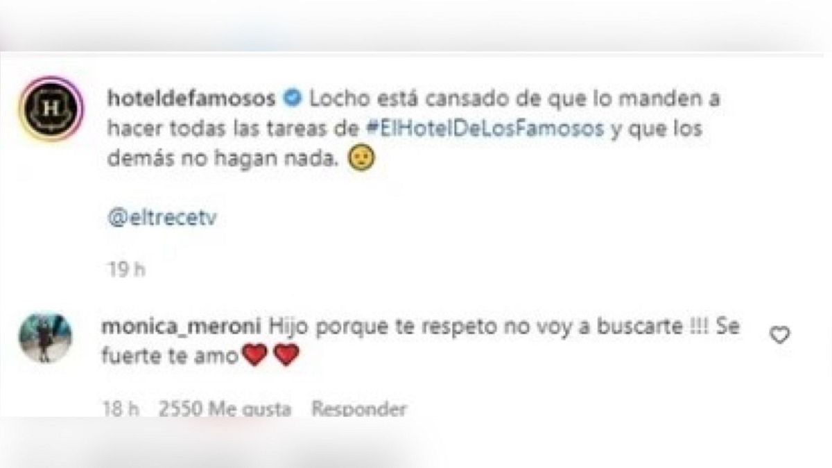 Locho Loccisano quedó nuevamente nominado por sus compañeros en El hotel de los famosos (El Trece) y su mamá, Mónica Meroni, reaccionó de manera picante en las redes.