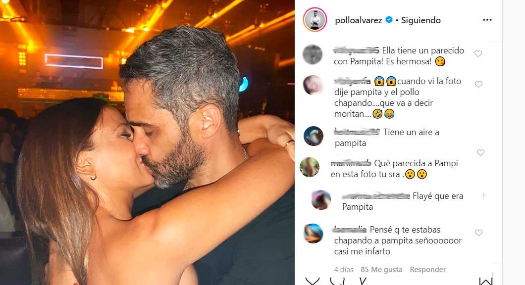 El Pollo Álvarez compartió una foto en su cuenta de instagram en el que se está besando con su mujer, Tefi Russo. La tierna imagen se volvió algo confusa para sus seguidores que confundieron a la cocinera con Pampita.