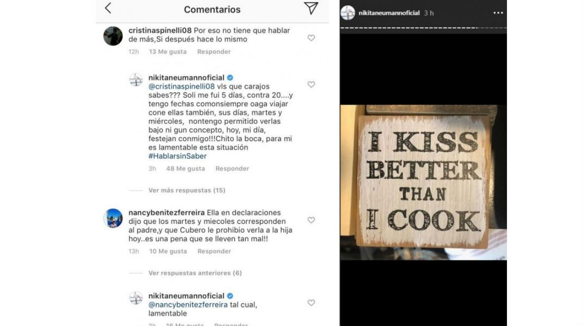 "¿Vos qué carajos sabés? Sola me fui cinco días contra 20, y tengo fechas como siempre para viajar con ellas también. Sus días, martes y miércoles, no tengo permitido verlas bajo ningún concepto. Hoy, mi día, festejan conmigo. Chito la boca. Para mí es lamentable esta situación", escribió en su cuenta de Instagram.