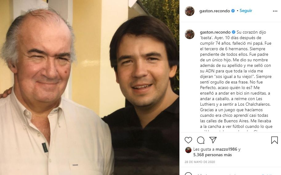 Cuando ocurrió la pérdida de su padre, Recondo lo despidió con un sentido posteo en Instagram.