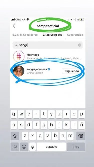 Lo cierto es que tras ese encuentro, La China comenzó a seguir en Instagram a Pampita. Mientras que la conductora aceptó esa solicitud 2.0 y también comenzó a seguir a Suárez.