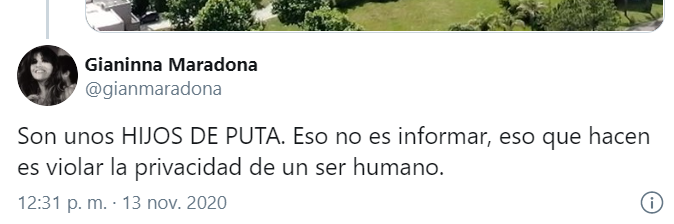 “Son unos HIJOS DE P.... Eso no es informar, eso que hacen es violar la privacidad de un ser humano”, escribió Gianinna.