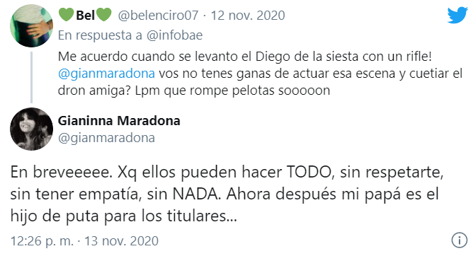 Al ver la noticia en Twitter, la hija de Diego puso el grito en el cielo.