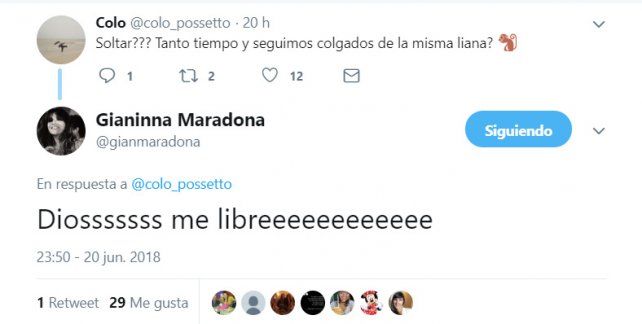 La hija de Diego Maradona le contestó a una seguidora de Twitter que hizo referencia a lo que pasó en el piso de "Intrusos" durante el feriado del miércoles.