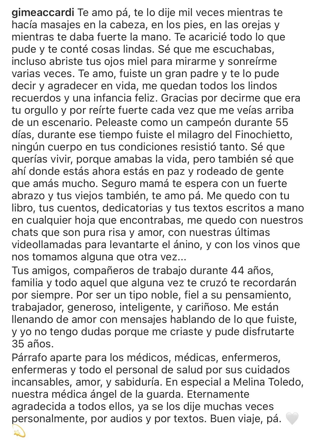 Y además compartió la carta que le dedicó con el título: "Buen viaje pá", a corazón abierto.