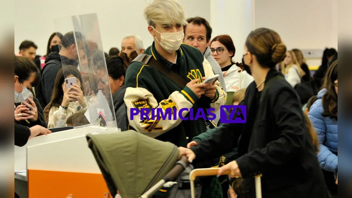 PrimiciasYa registró las imágenes de la actriz en el Aeropuerto Internacional de Ezeiza, junto a sus hijos, y con la sorpresa de que el músico iba a ser parte del viaje.