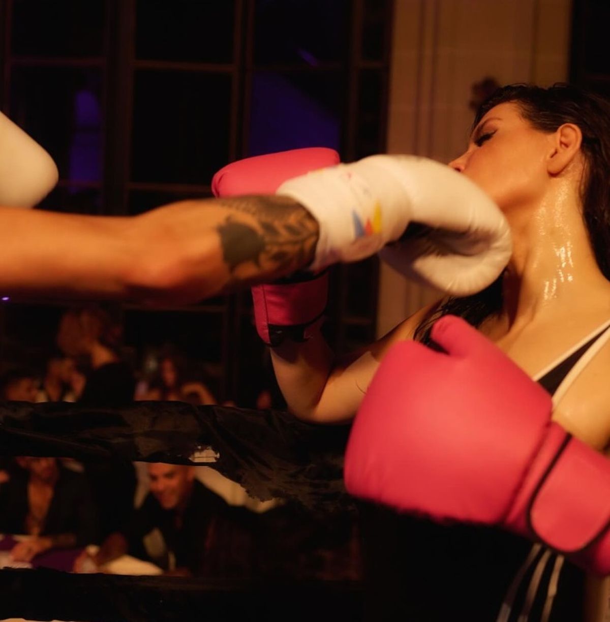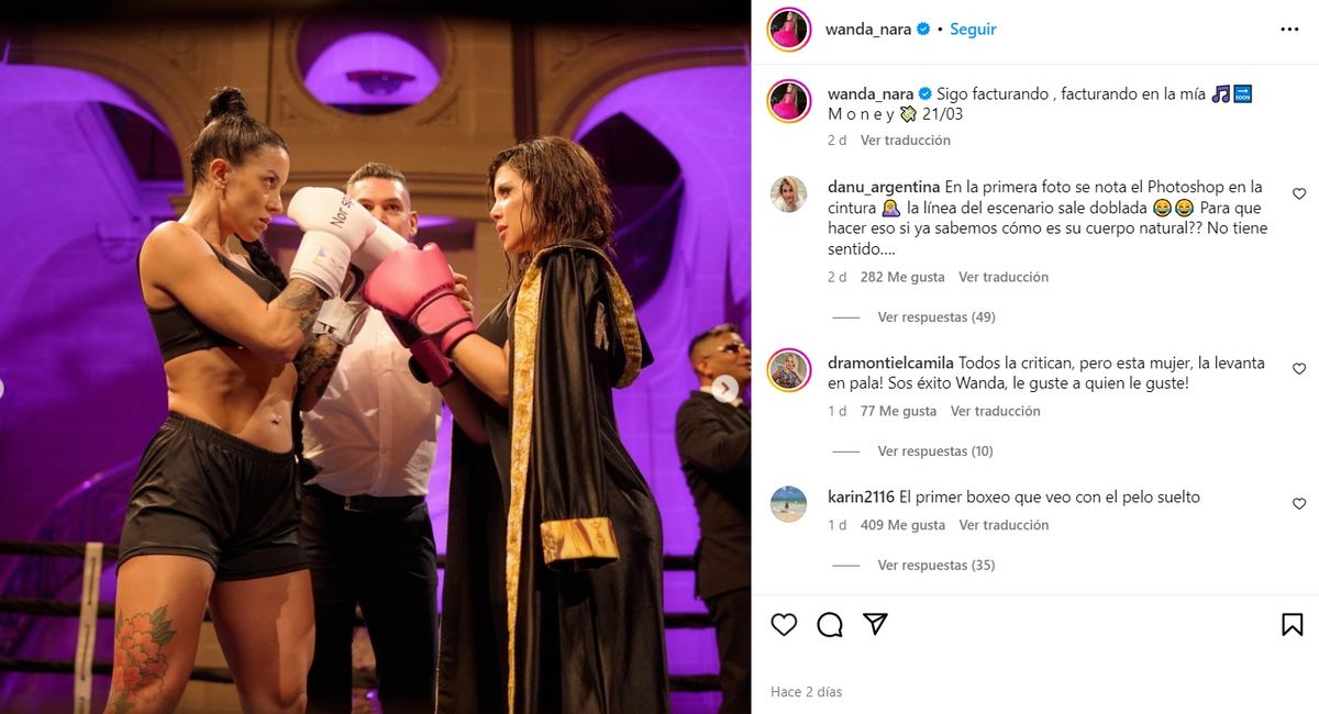 En las fotos, la esposa del futbolista Mauro Icardi se muestra arriba del ring, en plena pelea con otra mujer, y sufriendo algún que otro golpe de puño típico del deporte.