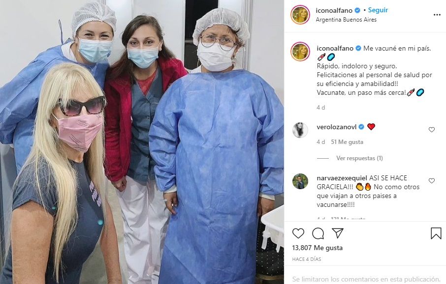 Y remarcó al respecto: "Cada uno da el mensaje que quiere dando el mensaje que quiere. En las redes son más malos que las arañas. También Mirtha que es una súper diva eligió vacunarse acá".