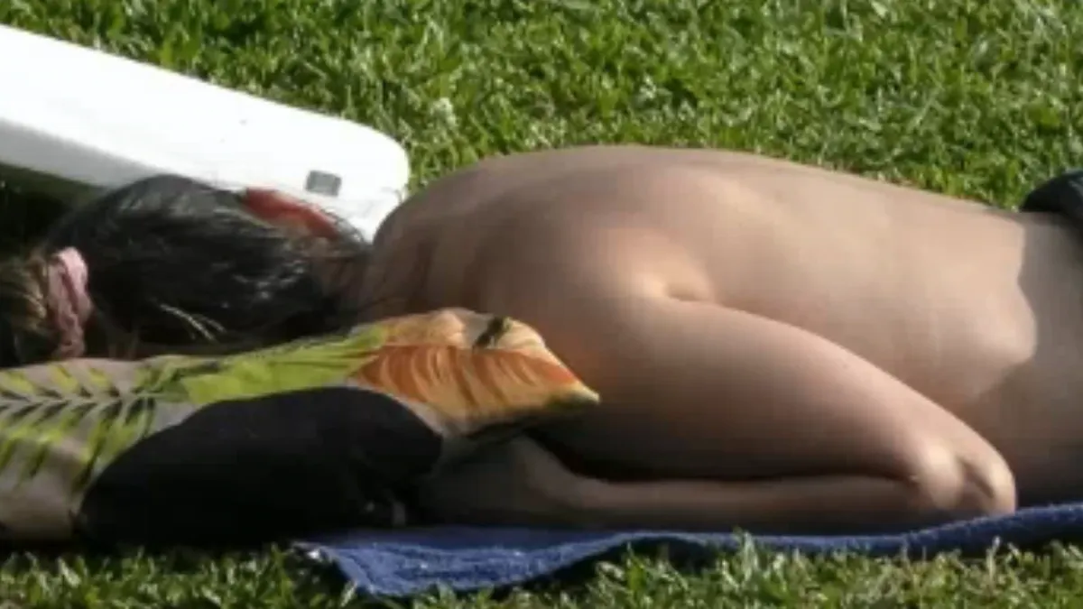Las imágenes se volvieron virales en minutos, y en ella se las ve recostada, boca abajo en el césped, sobre una toalla y un almohadón, dejando su espalda completamente al descubierto, mientras abajo estaba usando solo un pantalón negro.