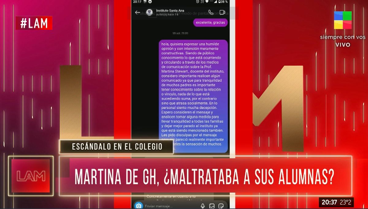 Este jueves, en LAM (América TV) , uno de los temas que se trataron fueron los supuestos maltratos de Martina Stewart Usher, una de las participantes de Gran Hermano 2022, hacia alumnos de un colegio.
