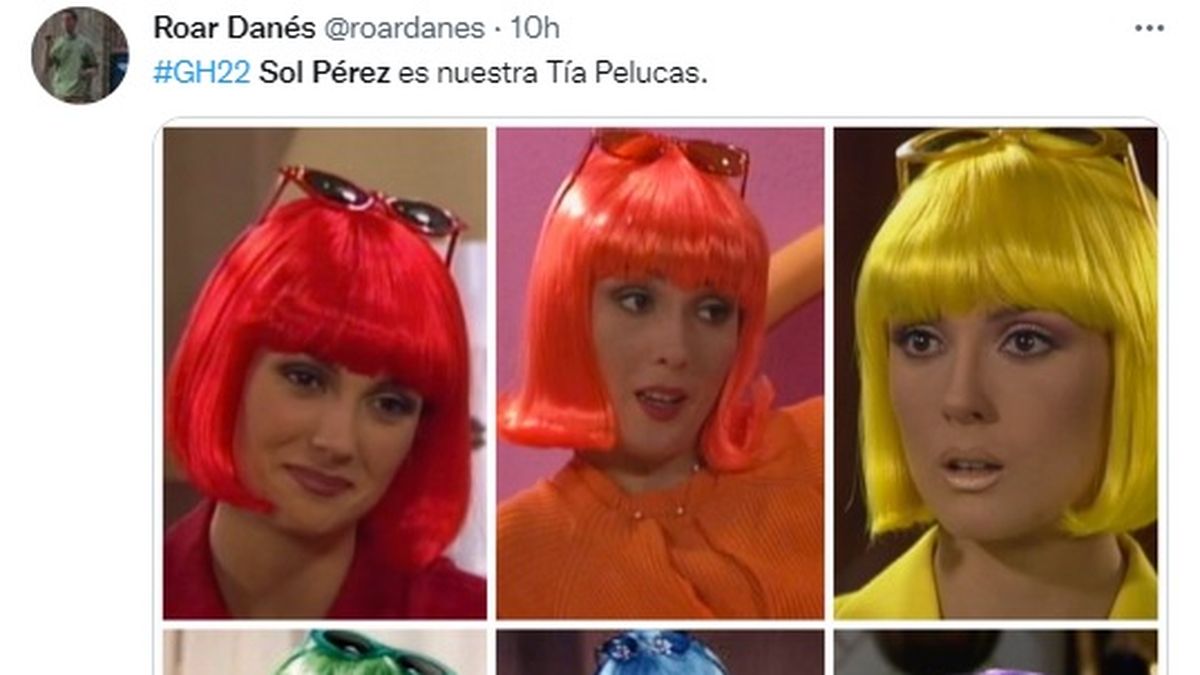 En tanto, otros usuarios la compararon con aquel icónico personaje de la novela mexicana Carita de Ángel de comienzos de este sigo. “Sol Pérez es nuestra Tía Pelucas”, aseguraron junto a un compilado de la tía de Dulce María y sus pelucas multicolores.