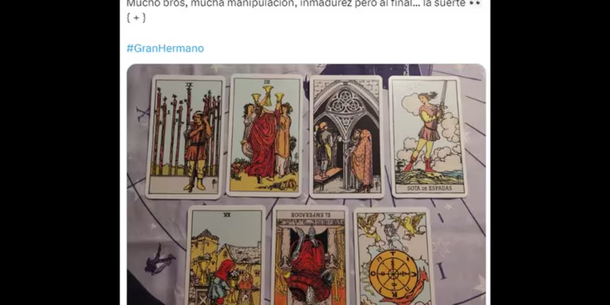 En este contexto, un tarotista le tiró las cartas al participante de Gran Hermano (Telefe) que impactó a todos. En su tirada, Art of Dan (@iloveddankong en X), vio que a Martín lo rodea “mucha manipulación, inmadurez” por parte de Los Bros, pero lo notó “a la defensiva o muy alerta cuidando lo que tiene logrado hasta el momento".