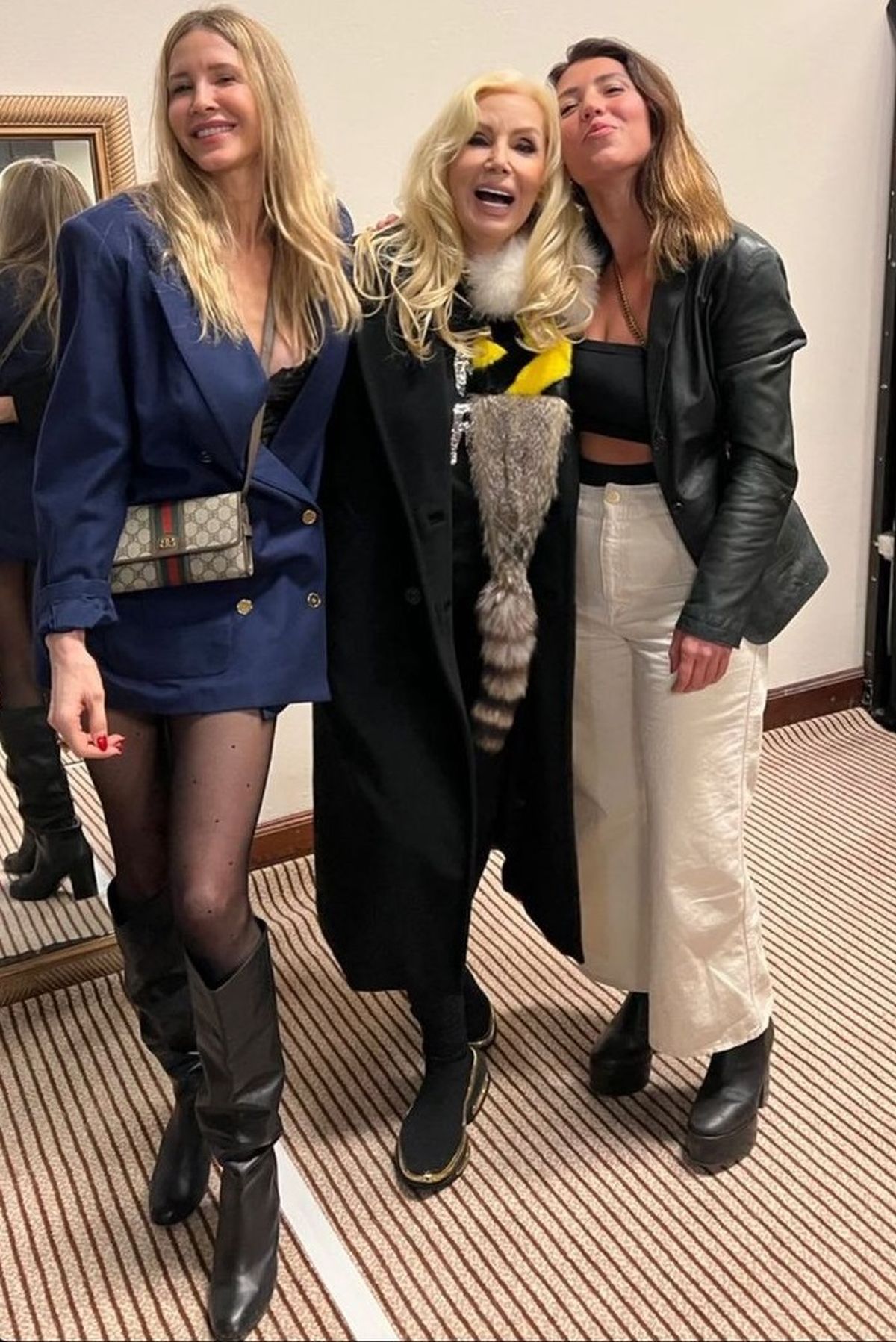 La diva de los teléfonos mostró en su cuenta de Instagram la intimidad del camarín en la previa de la función con acompañantes muy especiales y cercanos: se trata de su hija Mercedes Sarrabayrouse, el productor Luis Cella (hijo) y su nieta Lucía Celasco.