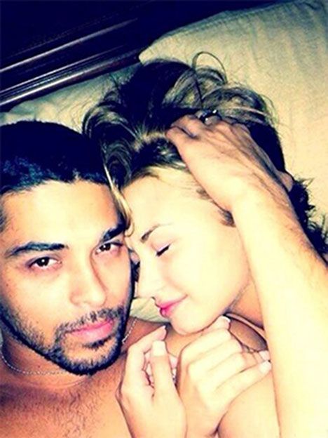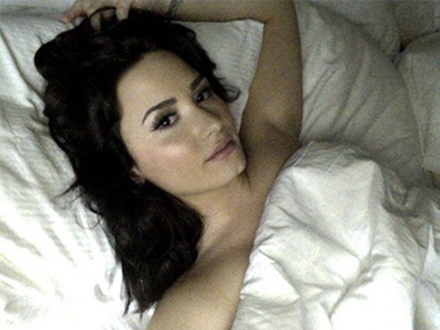 También hay una serie de selfies, uno de los cuales cuenta con la estrella debajo de las sábanas y aparentemente en topless, otra foto aún pretende revelar su pecho desnudo.