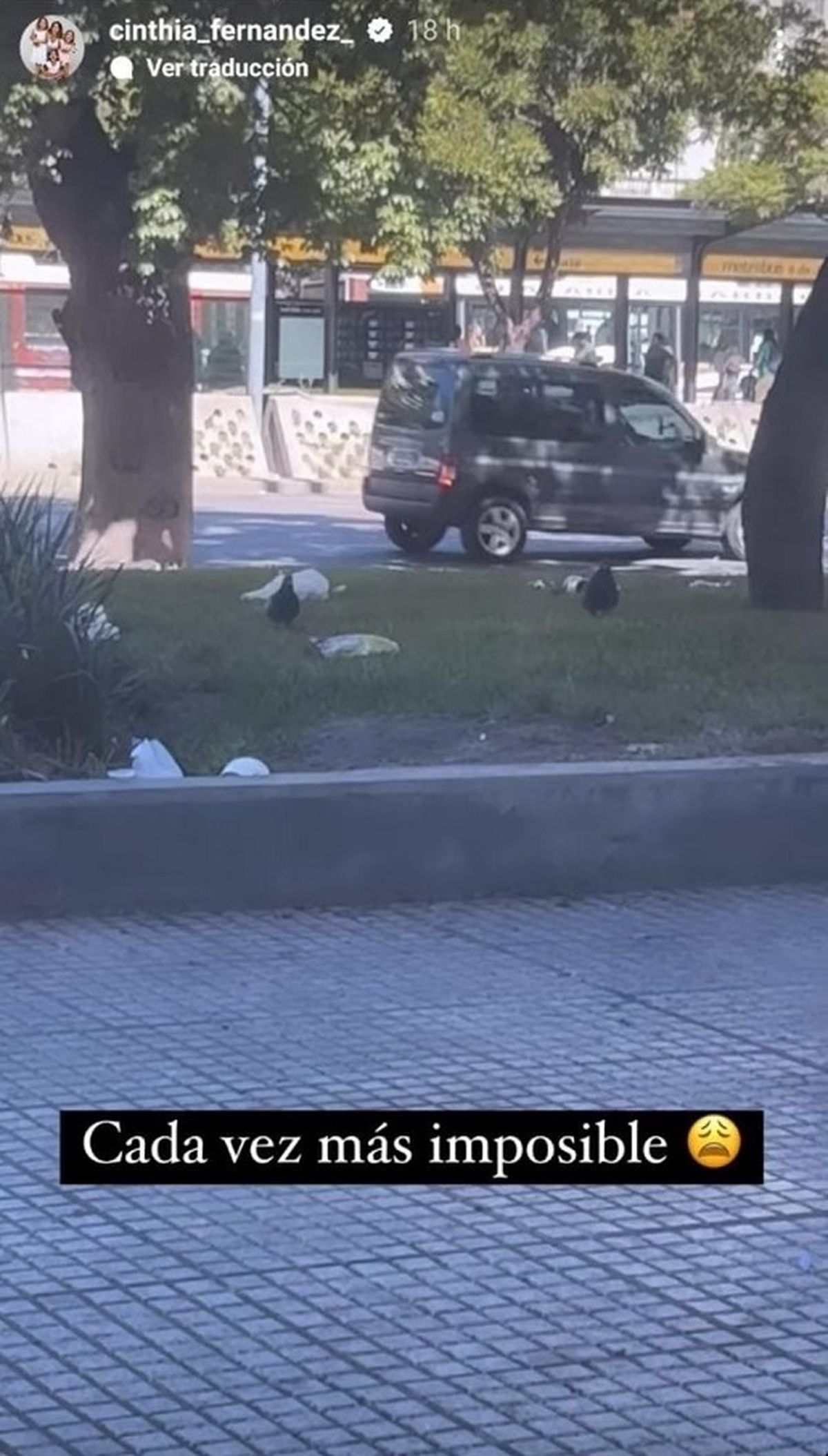 Así, Cinthia Fernández tomó su teléfono celular comenzó a subir historias desde su auto. "Estoy entre piquetes, cabezas de termo. Cómo los detesto. Cómo detesto que le caguen la vida a la gente que labura", soltó furiosa en el primero de sus posteos.
