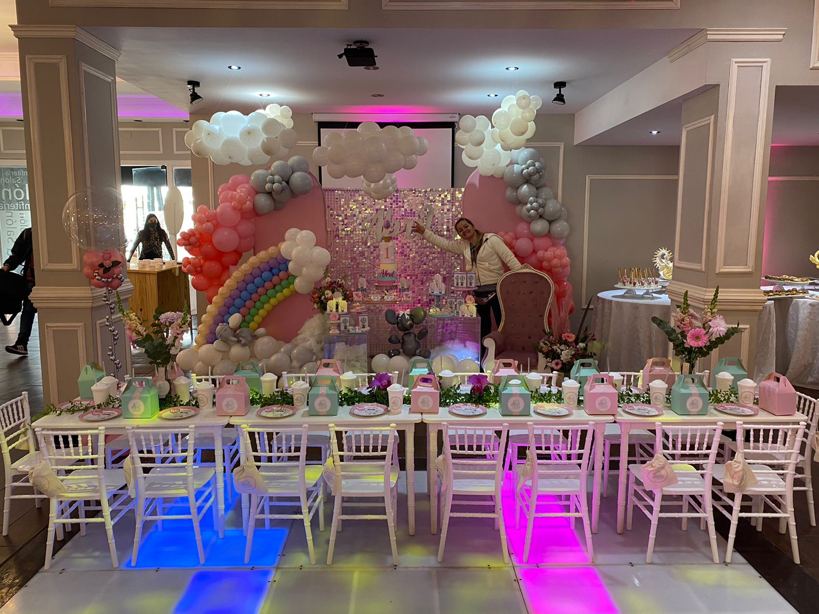 El cumple fue en un salón de Zona Sur de llama La Paloma. La temática del evento fue elefantito. @tipi.fest fue la encargada de el candy bar y hubo un sector armado con sillas Tiffany realizado por Lala Fiestas.